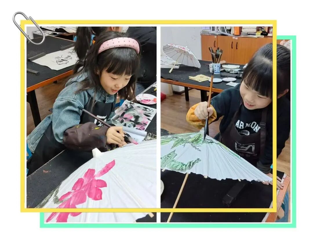 纸伞与国画的结合,不仅是一次艺术的碰撞,更是一次文化的传承与创新。孩子们在绘制过程中,不仅学习了国画的技法与理论,更在内心深处种下了对传统文化的热爱与尊重。他们用自己的方式,将传统与现代、古韵与童趣巧妙地融合在一起,创造出了一幅幅充满创意与活力的作品。